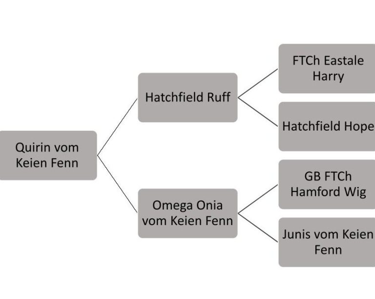 In der 4. und 5. Generation dessen Tochter Alpha vom Keien Fenn, deren 30 Nachkommen alle mit ED frei ausgewertet wurden.